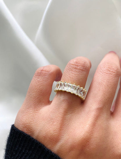 Porta luce ai tuoi look con l'Anello Eleonora in acciaio inox. Tempestato interamente di cristalli di taglio rettangolare, questo anello è un mix perfetto tra design moderno ed eleganza. Un must have per le tue mani, non ne potrai fare a meno!
