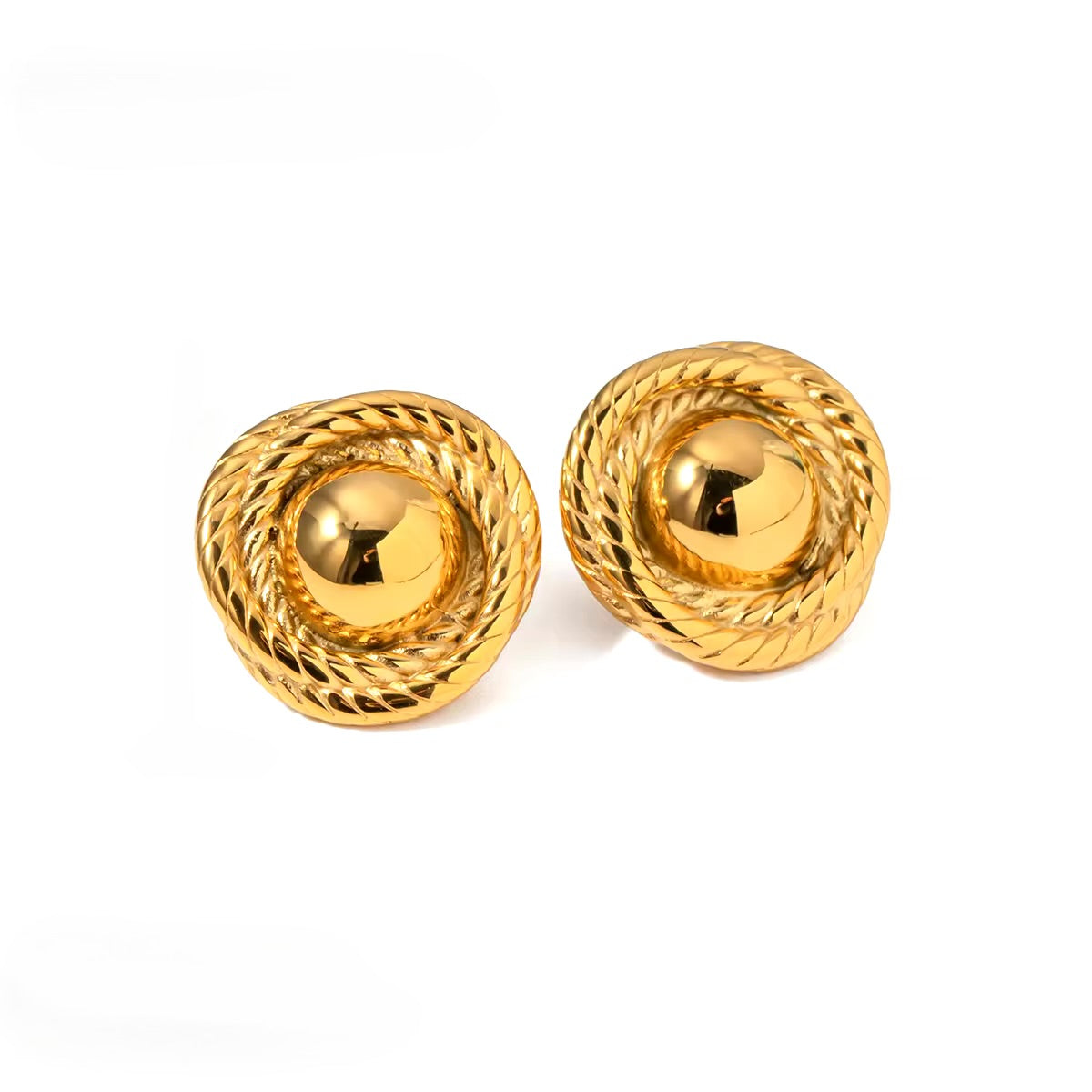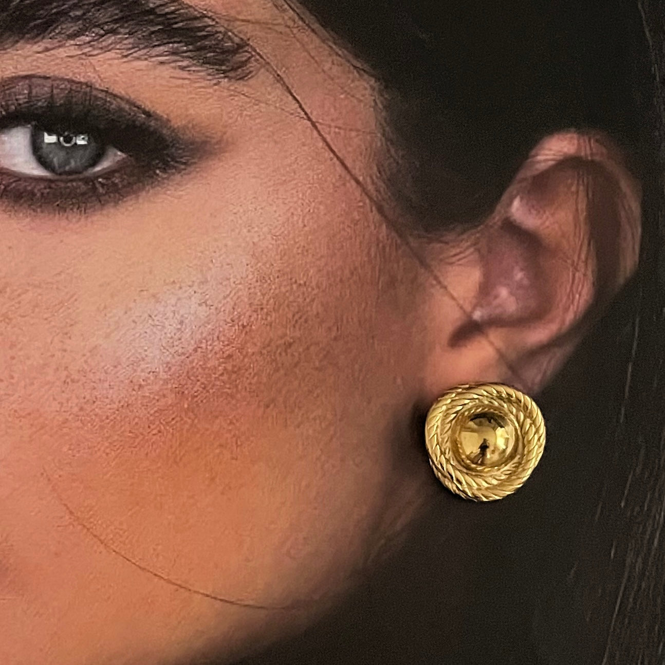 Questi orecchini hanno una vera e propria allure vintage. Lo stile è anni 50, perfetti con un outfit in stile old money. Sono realizzati in acciaio inossidabile placcato oro 18K, presentano una chiusura a farfalla.