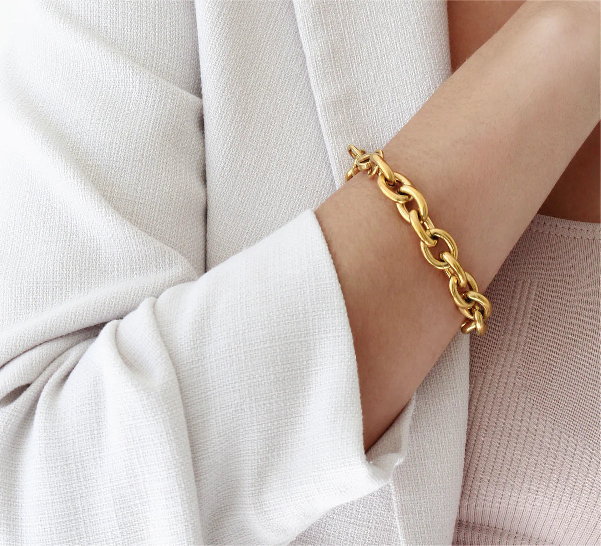Crea un look aesthetic con il nostro bracciale realizzato in acciaio inossidabile e placcato oro 18K. Un must-have per ogni outfit, grazie alla sua linea morbida e minimal. Regolabile per una perfetta vestibilità. Aggiungi un tocco aesthetic al tuo polso.