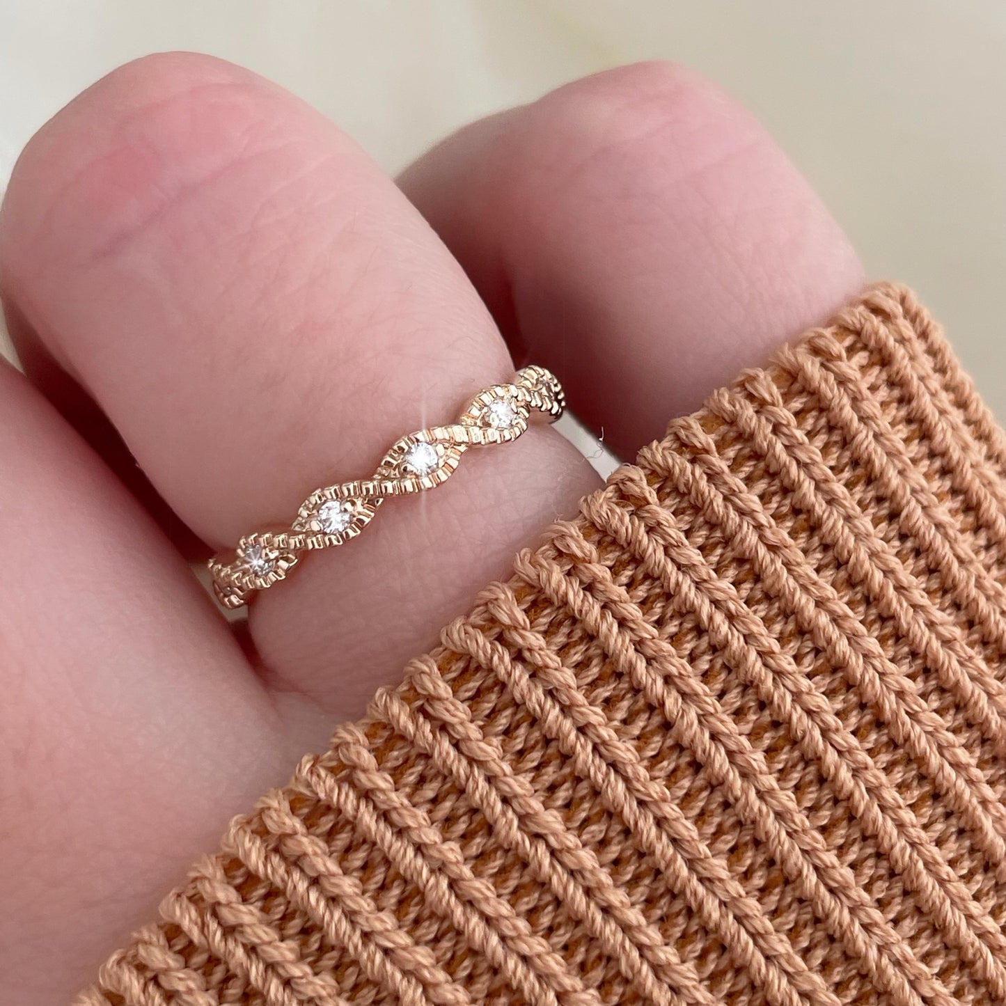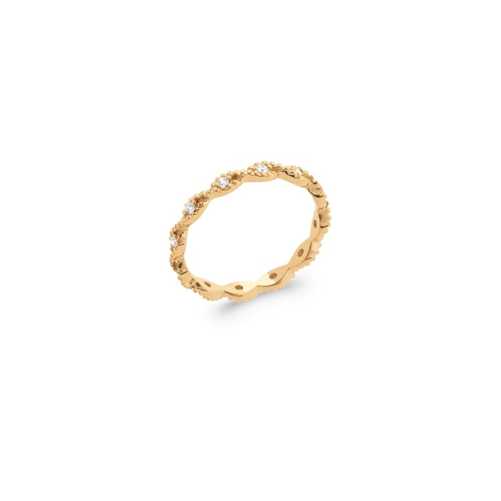 L'anello Caesium lavorato finemente è una moderna interpretazione degli stili classici. Realizzato in Argento Sterling 925 placcato oro 18k è decorato da una fila di zirconi rotondi in un disegno intrecciato. Indossalo da solo o abbinato ad altri anelli della collezione OAYA per un look moderno che aggiungerà un’eleganza senza tempo a ogni look.