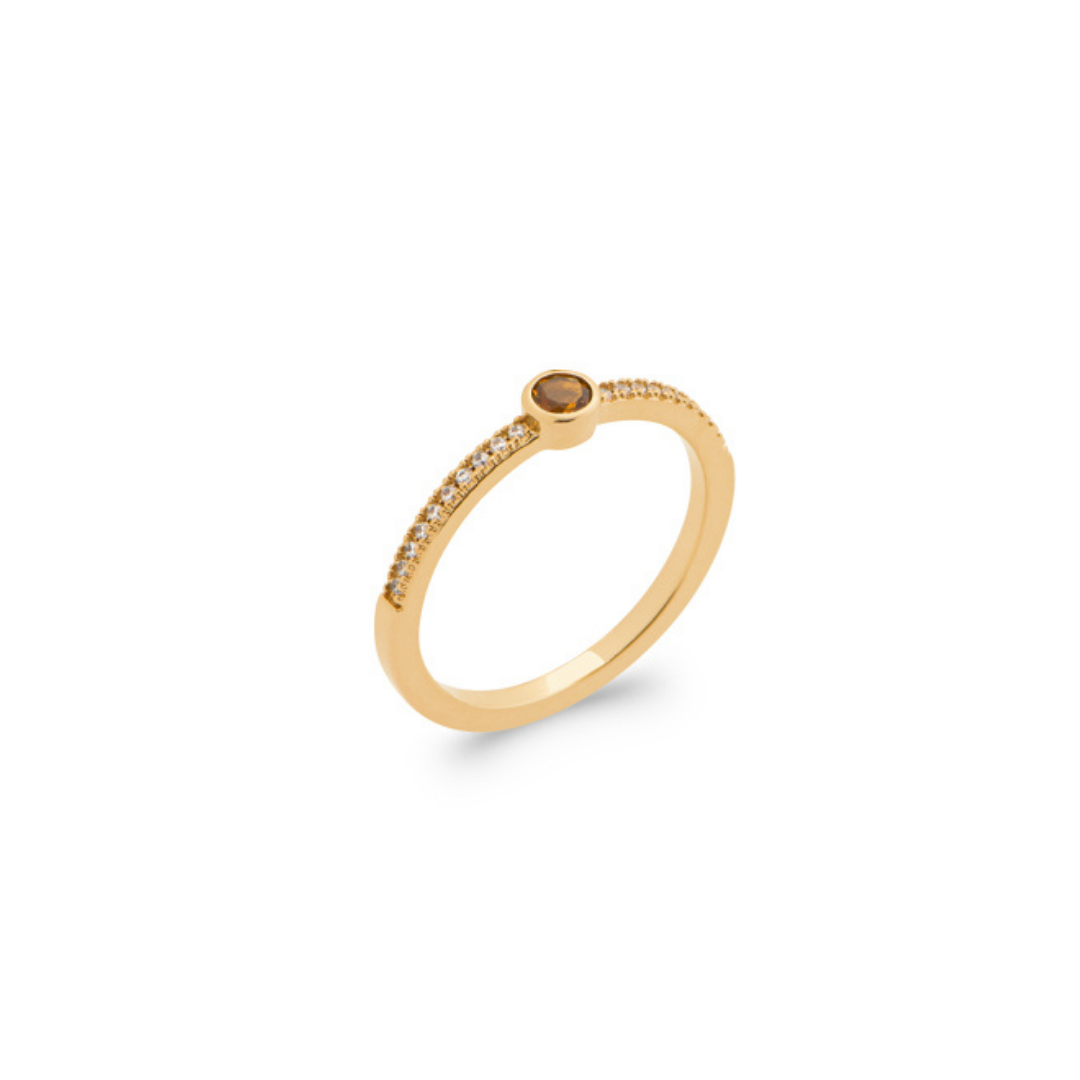 Miele? L'anello Chlorine rifinito a mano e realizzato in Argento Sterling 925 placcato oro 18k presenta un'ambra accompagnata da zirconi luminosissimi. Indossalo per definire il tuo stile scegliendo i colori più adatti a esprimere la tua personalità. Abbinalo creando combinazioni su un unico dito o sulle dita di entrambe le mani, in tonalità simili o semplicemente scegliendo i colori che hanno il significato più importante per te.