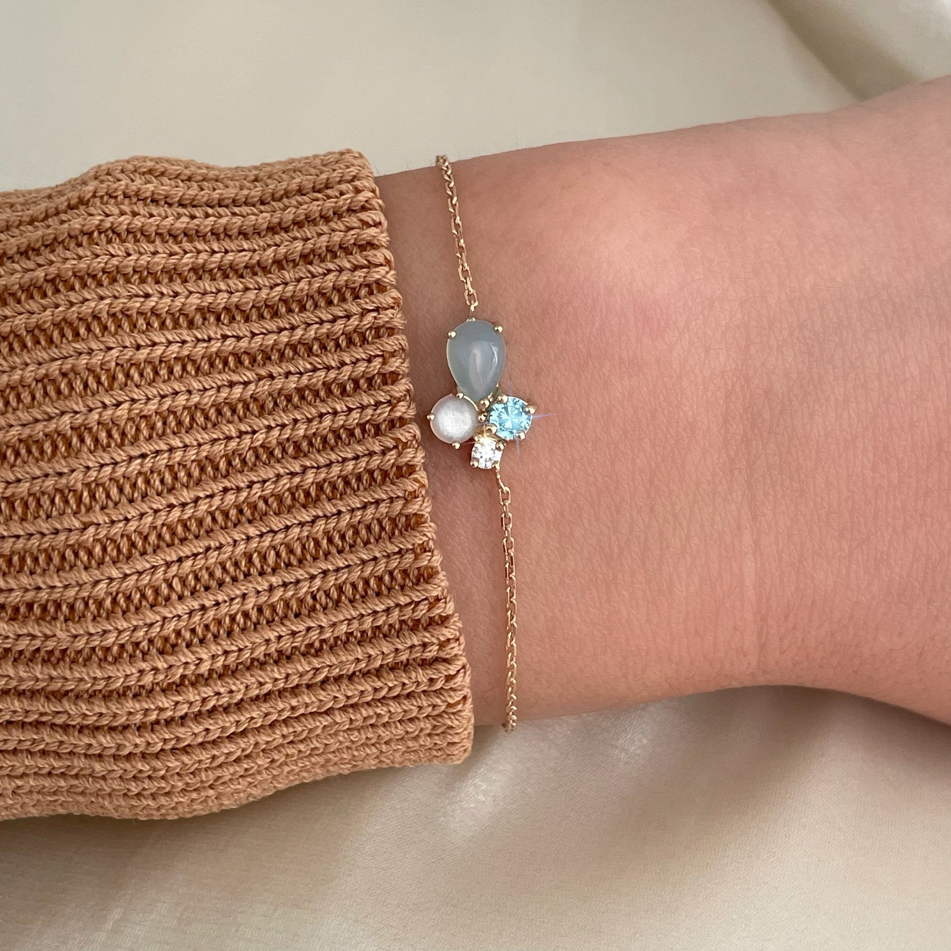 Il bracciale Cobalt è un gioiello unico nel suo genere, si distingue per i suoi zirconi azzurri e opali bianchi in asimmetria che insieme creano un perfetto gioco di contrasti. Di lunghezza massima di 18cm regolabile, in Argento Sterling 925 placcato oro 18K regala uno scintillio incomparabile.