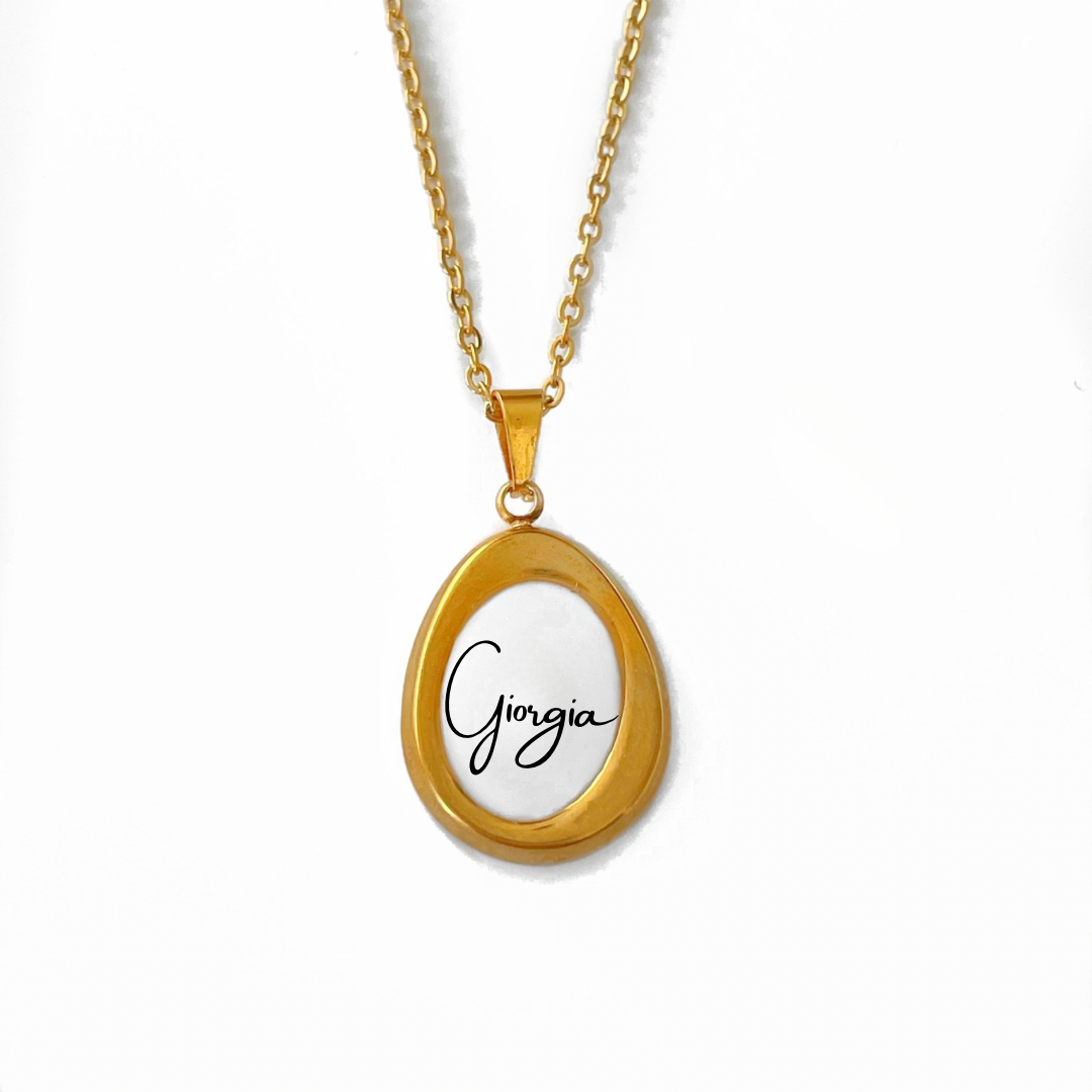 È realizzata in acciaio inossidabile e placcata oro 18K, il suo ciondolo è artigianale composto da una parola personalizzata di massimo 7 lettere. Dal design vintage ed esclusivo è perfetta per completare il tuo outfit di tutti i giorni.