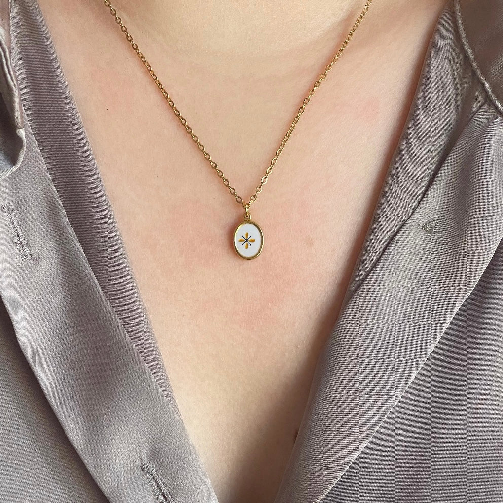 È realizzata in acciaio inossidabile e placcata oro 18K, il suo ciondolo è artigianale composto da un piccolo disegno stile capri. Dal design esclusivo è perfetta per completare il tuo outfit di tutti i giorni.