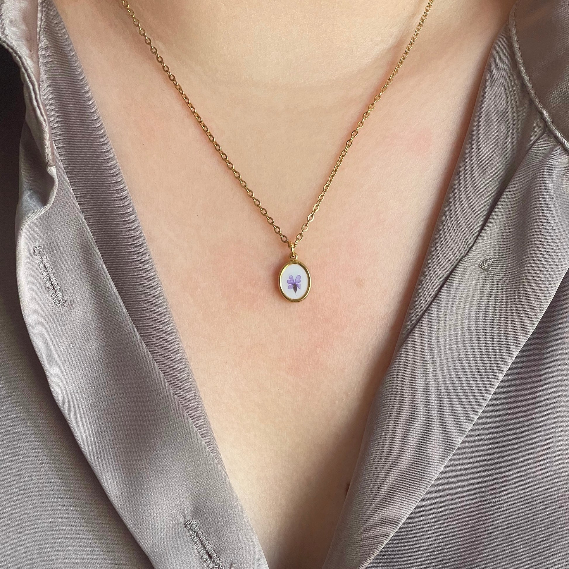 È realizzata in acciaio inossidabile e placcata oro 18K, il suo ciondolo è artigianale composto da piccoli fiorellini veri. Dal design vintage ed esclusivo è perfetta per completare il tuo outfit di tutti i giorni.